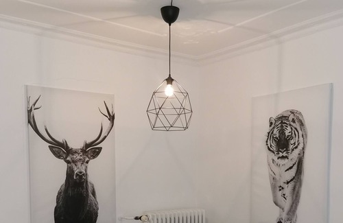 This 2-bedroom, 1-bathroom rental features a sofa bed and a desk. Connect to the WiFi, or get cozy in front of the Smart TV. Bathroom amenities include towels, toilet paper, and soap. The kitchen is equipped with an oven, a stovetop, and a refrigerator, as well as a coffee maker, an electric kettle, and a microwave. And you can even travel light because you'll have a washing machine. Other amenities include bed sheets and a desk chair.