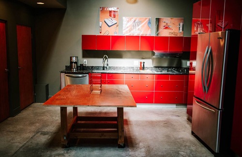 This apartment is an artist's dream and has thoughtful design features that are meant to make your stay comfortable. Complete with luxury amenities, large screen televisions, curated decor, and lots of space for relaxing or festively enjoying the space! It is perfect for families or small groups of any kind. Each room has vintage furnishings including organic cotton sheets, comfortable mattresses, and a spacious kitchen equipped with all of your basic cooking needs!