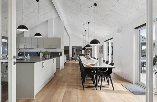 With its numerous activity options and plenty of beds, this vacation home is ideal for a large group or several families traveling together. Here in the very north of Jutland, you will have an unforgettable vacation. Decide in the morning who in your group will prepare breakfast together. In the elegant, open kitchen there is plenty of space for cooking and for lively discussions about the day's plans. The stylish interior also exudes an inviting atmosphere. Organize a billiards tournament here and then relax in the pool and sauna.