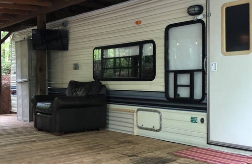 Pet Friendly Mountain RV with Porch 10 min from Helen | House in Cleveland, GA