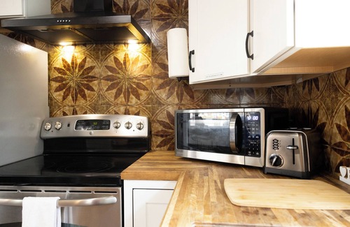 Grill BBQ: Outside on the front porch is a gas grill and picnic table for outdoor dining. Head to the front yard to enjoy a glass of wine around the fire pit.
