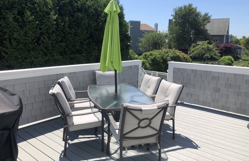 Located in a quiet neighborhood, the home has a nice backyard for lawn games. The front deck is the perfect spot to grill, dine al fresco, and enjoy a good book and the ocean breeze. Walk to Iggy's, Aunt Carrie's, and Chair 5. It’s a quick drive or bike ride to Scarborough.