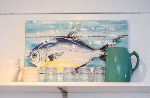 Tastefully decorated. Perfect for a Couple’s getaway . We do not allow more than two people in this studio cottage. Ample parking for a small Boat and trailer. There is a fish cleaning station on the side of the building and a great outdoor area in front of the studio for early morning coffee and afternoon lounging. Much much more than you will find anywhere for the price! The beach is just steps away. If you are looking for a larger cottage or you have a child, please see our other properties.