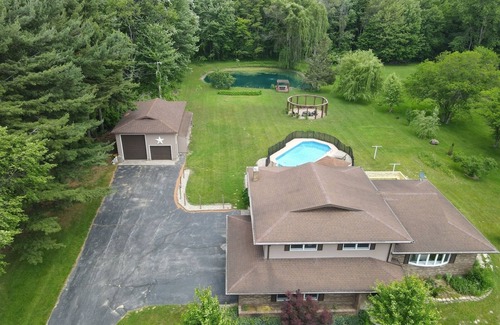 Pool in summer, hot tub all year, designer home, huge yard, minutes to beach is located in Bridgman. Pool in summer, hot tub all year, designer home, huge yard, minutes to beach provides accommodation, featuring Internet, Bedding/Linens, Wellness Facilities, among other amenities. This House features Internet, Bedding/Linens, Wellness Facilities, to make your stay a comfortable one.