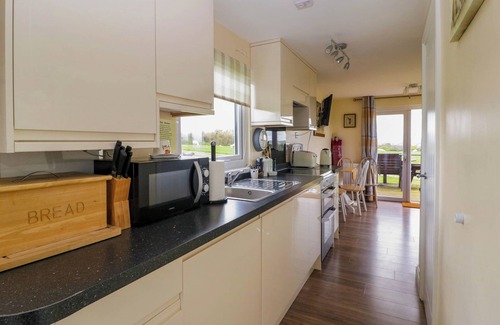 Poppy, a single-storey lodge, consists of an open-plan living space including a kitchen with an electric oven and hob, microwave, fridge with icebox, kettle, toaster, a dining seating for four people, and a sitting area with double sofa bed and TV. The bedrooms consist of a double with a TV and a single, serviced by a wet room. You'll find a shop in 2.2 miles and pub in 1.1 miles. Fuel, power, bed linen, and towels are included in the rent. Outside, there is a private garden with decking, furniture, and barbecue, and off-road parking for two cars. Sorry, no smoking. Escape to the tranquil countryside with a stay at Poppy. Note: No WiFi, but good 4G signal. Note: Logs and barbecue coals can be purchased on request. Note: Property beside a field of sheep. Note: Extra-wide doors and supportive handrail in wetroom for wheel-chair friendly access. Note: Wildlife pond onsite with no fencing, children must be supervised at all times.