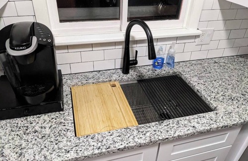 The cabin has been updated to include a brand new kitchen with granite counter tops, stainless steel appliances (including a dishwasher), and premium cabinets. the stove in the kitchen and the grill directly off of the lower level are both natural gas, providing consistent, hassle free, and top of the line cooking abilities.