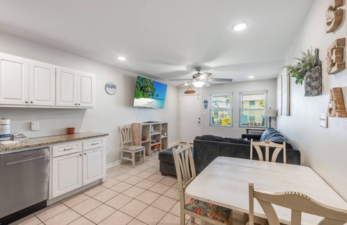 Welcome to our adorable condo at Sunrise Villas #108, in the perfect location! It's just a quick walk across the boardwalk right behind us to the beach, plus just a couple of blocks to the heart of Port Aransas and all the cute beach shops, restaurants, grocery store, etc. Kick back and enjoy the best of both worlds - beach and town. Our condo has one bedroom with a king bed. Two full baths and a full size sleeper sofa. There is also a private patio area to enjoy the gulf breezes. The community pool in conveniently located just a few steps away. This a warm and welcoming place to enjoy your vacation. No pets allowed at this property.