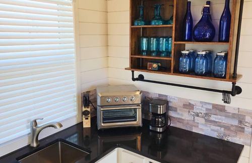 Guests have full access to the entire unit, featuring a cozy queen bedroom, a full-size bathroom, and a well-equipped kitchenette. Relax and unwind in a space thoughtfully designed for comfort and convenience, with access to a shared resort-style pool just steps away for the perfect Hill Country retreat.