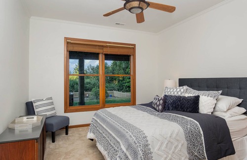 The lower level hosts a secluded living area with a smart TV and three additional bedrooms. Here, you can find easy access to the backyard - a stone pathway will lead you straight to the private heated pool with an attached pool spa and a pool slide to keep you cool and refreshed during your stay! Pool heat is billed per day.