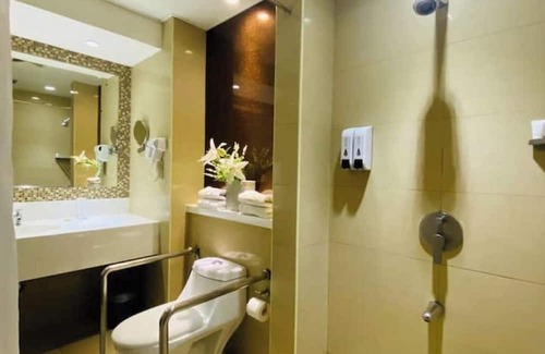 Our spacious PWD-friendly room features a plush King-sized bed and is thoughtfully designed for guests with physical disabilities. Enjoy modern comforts including: