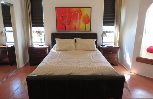Balcony with breathtaking sunsets. Beautiful garden with native cacti and citrus trees. Variety of patios with BBQ and fireplace. Living room with open kitchen, TV and Kiva-fireplace. Bedroom with plenty of storage and meditation nook. Bathroom with walk in shower.