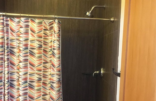 The upstairs bathroom has a custom tiled spacious shower. The downstairs bathroom has a custom tiled shower with an enameled cast iron full size bathtub. There is a large oversized hot water heater to accommodate our guests.