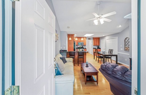 1 bedroom/1.5 bath apartment with open concept floor plan in convenient location. Bedroom with attached bath has a queen bed and tv with Roku. Half bath off the living space with a washer/dryer. Kitchen has stainless steel appliances and granite countertops, plus a large table. Living room has leather seating and a large tv with Roku. High speed Wifi and central A/C throughout. Private entrance; non-smoking and no pets allowed; off-street parking for one car. 5 minutes from beach & local parks!