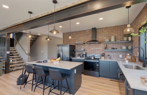 Step inside to discover a space that's as inviting as it is stylish. Industrial-chic accents blend with warm wood tones, creating a sleek yet cozy ambiance. The spacious living room is the ultimate hangout spot, complete with a plush sectional, a fireplace for those crisp mountain nights, and a big-screen TV for movie marathons.
