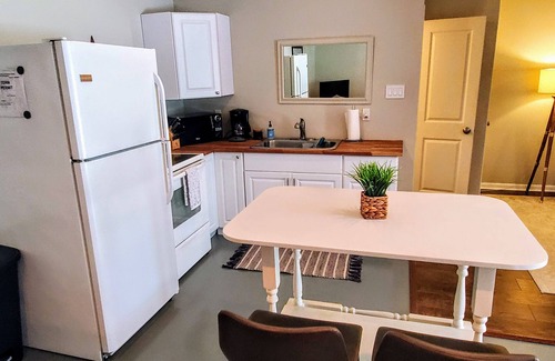 This cozy converted garage is the perfect home away from home located in South Nashville, just 4 miles from Downtown! Our private guest suite includes a full kitchen, cozy King bed with firm memory foam mattress, one couch, one loveseat, games, Wi-Fi and a TV with access to Netflix, HBO Max, Prime Video and more! This property which offers plenty of private parking and easy self-check-in is a quick $12 Uber/Lyft ride to Downtown and 12 South. The cute studio, fully-stocked with toiletries, coffee, towels and linens, is the perfect place to retire after a long day of traveling, honky-tonking, shopping, brewery-hopping and sight-seeing.