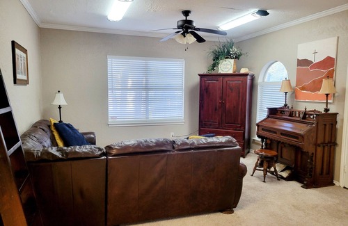 Escape to this delightful house in picturesque Colleyville. 1 Bedroom with a Queen bed, 1 bathroom equipped with hair dryer and shower. Guests can freshen up after a day of exploring. The property boasts AC, heating, WiFi, TV, an iron, and a washing machine and dryer for convenience. It's easy to see why you'll be able to unwind at our place.