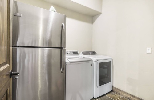 The second downstairs living area has an awesome entertainment media room with a 55” flat panel TV, a full-size pool table, sectional sleeper sofa and stacked stone electric fireplace. There is also a full-size laundry room with a washer and dryer and an additional full-size refrigerator for those extra groceries. End your day with a soothing soak in the outdoor hot tub on the 40 ft wide, screened-in patio. On cooler nights enjoy smores in the outdoor, stone wood-burning fireplace, while you relax in the custom solid wood glider rockers and enjoy the views of Table Rock Lake in a bug-free environment.
