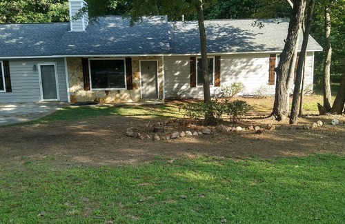 Welcome to our 4 bedroom 2 bath home. We sleep 15 in real beds with new mattresses. We have wifi, beautiful kitchen, washer, and dryer, and a ping pong table, We are a short drive to Atlanta and Six Flags. 3 miles from interstate 20, 5 minutes from all chain restaurants. There is a grocery store 3 min from the home. We are in a quiet neighbourhood. The house is on a concrete slab. (No steps in the house) There is 2 full bathrooms. (The master bath has a large garden tub)