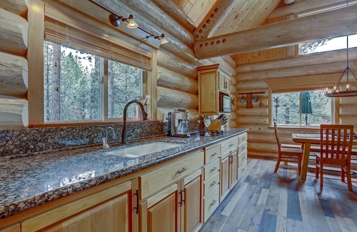 Enjoy all that central Oregon has to offer from this lovely, spacious handcrafted log home with over 100 feet of river frontage on the Deschutes River. About 10 minutes southwest of Sunriver, 30 minutes from Bend and 30 minutes from Mt. Bachelor, this is the perfect vacation spot for rest, relaxation or outdoor fun. From a peaceful 1.5 acre setting at the end of a quiet paved road, bordering National Forest on one side and the river on another, you can set out by bike, kayak, paddle board, on foot, or by car to enjoy the beauty of the area.