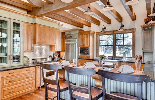 The home's superior interior blends with Park City's natural beauty featuring vaulted ceilings and numerous open spaces for gathering.