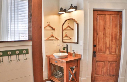 The Master Suite is a quaint private suite with completely updated on suite bath. Renovated to have a farmhouse feel, this rental is one of the coziest spaces in Hermann. Combine the room with our outdoor fire pit and a bottle of wine and we can guarantee a stay you won't forget!