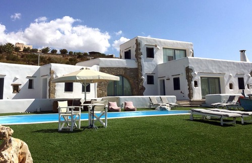 Located within a large private estate with many trees offers its guests amazing sea views, gorgeous private terraces, a large private pool, quiet relaxation and spacious interiors. The villa has been constructed with traditional Cycladic architecture, tasteful decor and plenty of indoor and outdoor