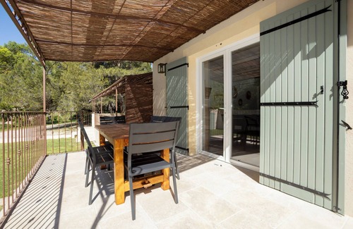 The cottage opens onto a private terrace offering breathtaking views of the Alpilles massif, perfect for relaxing moments outdoors. The 7000 m² property is a green setting conducive to calm and serenity. Visitors can enjoy the garden, designed to preserve everyone's privacy, as well as the hiking trails that leave directly from the estate, ideal for walks or bike rides. Private parking is available to ensure the safety of your vehicles.