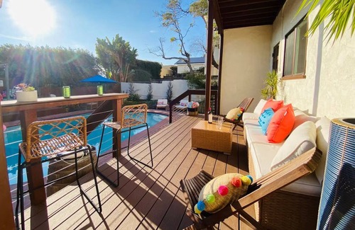Make yourself at home in this cozy, centrally located, 1-bedroom San Diego casita. The guest suite has its own private full size pool, features a full kitchen, a living room with a sofa bed, bedroom with a comfy king bed and bathroom with a bathtub. Guests can also enjoy amenities like a fully stocked kitchen, games, bathroom essentials and beach gear! Fall in love with San Diego and enjoy the magic it has to offer.