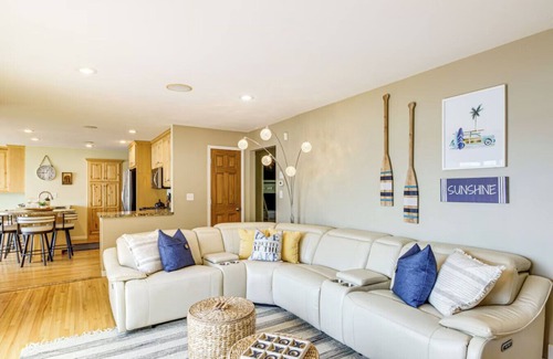 (OUTDOOR) Boat dock (no lift), furnished deck, covered patio w/ seating and fire table, lakeside bonfire pit, charcoal and gas grills, kayaks (2) w/ life vests, bicycles, basketball hoop, front porch w/swing, private backyard, beach chairs/towels/umbrellas, and speakers.