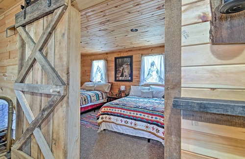 Nestled on a ranch, this rustic cabin offers access to several great amenities! Spend the day fishing or swimming in the pond right next door, or roam over to the operating farm to hang out with some sheep! (Travelers must reach out to the homeowner if they wish to visit the farm)
