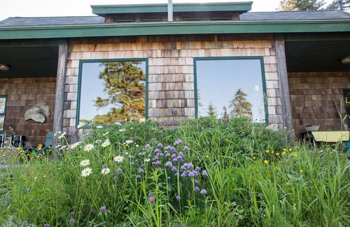 The cabin is just feet from the ocean and west facing -- promising one-of-a-kind sunsets. It looks out on three uninhabited islands that are protected eagle sanctuaries.