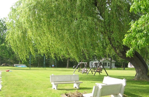 Welcome to Hansen’s Cottages! We have two very clean, modern and well appointed cottages (see other listing #814651) that are within *Dutch Village Resort, located on the northeast shores of Mullett Lake, about midway along the famous 45 mile Inland Waterway. You can enjoy boating, sailing, kayaking, fishing or swimming in the crystal clear water or just relax on our 4 acres of manicured lawns. Amenities include 208’ of clean beach front, tether ball, children's play area, community fire pit, cedar lawn swings, 14’ rowboat, paddle boat, 100’ dock w/ lounging patio, boat moorings and GORGEOUS SUNSETS. The lake bottom is firm, clean and sandy ~ there are no drop offs so it is very safe for kids!