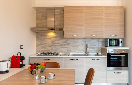 2-room apartment 65 m2 on 1st floor. Bright, fully renovated in 2022, comfortable and beautiful furnishings: open living/sleeping room with 1 double sofabed, dining table and TV (flat screen). Exit to the balcony. 1 double bedroom. Open kitchen (oven, dishwasher, Gas stove, 4 gas rings, toaster, kettle, microwave, freezer, electric coffee machine, Capsules for coffee machine (Nespresso)). Shower/bidet/WC. Gas heating, air-conditioning. Heating available only from 15.10. to 15.04. Natural stone floors. Large balcony. Balcony furniture. Beautiful view of the lake, the mountains and the resort. Facilities: washing machine, baby cot for up to 2 year olds, hair dryer. Internet (WiFi, free). Garage (extra) (1 car). Please note: non-smokers only. IT013249C2B29W647I