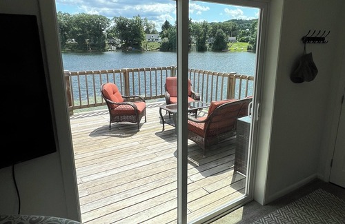 Welcome to our charming Upstate New York lake apartment, where nature's beauty meets cozy comfort. Situated on the shores of a serene lake, you'll be surrounded by a kaleidoscope of red, orange, and gold hues as the trees transform for the season. Step outside onto the expansive deck and experience the true magic of the season. Sip your morning coffee while the mist rises off the lake, or gather around the fire pit as the sun sets, casting a golden glow over the water.