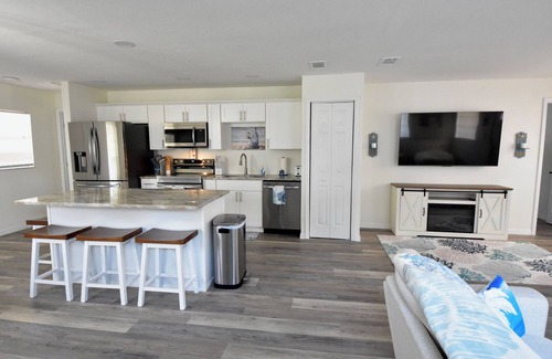 ✔ 2 Spacious Bedrooms – One with a queen bed and the second with a double full size bunk beds. Fresh linens and plenty of storage.✔ 2 Modern Bathrooms – Updated with sleek finishes and stocked with essentials.✔ Fully Remodeled Interior – Bright, airy, and stylish with all-new furnishings.✔ Fully Equipped Kitchen – Everything you need to cook at home with kitchen table and center island with bar stools.✔ Outdoor Relaxation – Screened in porch with sofa set and table as well as patio slab that goes down to floating dock with benches. Perfect for enjoying the Florida sunshine and coastal breeze.