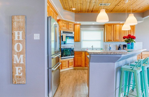 Welcome to Emerald Isle by Casago Bolivar Vacations. This luxurious 4-bedroom (three private bedrooms plus a comfortable sleeping loft), 2-bathroom home offers amazing beachfront views and the soothing sounds of the Gulf. With an open-concept living area, high ceilings, and a wraparound deck, this home is designed for relaxation and enjoyment. Located in Gilchrist, TX, it's the perfect base to explore local restaurants, shops, and nearby attractions like Gilchrist Beach and the Fun Spot Water Slide.