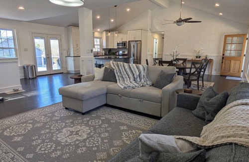Bring the whole family to this beautifully remodeled smart home that features 3 spacious bedrooms, two king beds, a full bed, office area, high speed wifi and multiple smart TV's that are cast ready. Have a sporty family? Come battle it out in ping pong, foosball, basketball, cornhole, spikeball, X-Box, or connect your favorite gaming console to one of the two 85" smart TV's with booming sound. Then you can relax on the huge deck and grill up something amazing on the gas grill and go for a soak in the hot tub.