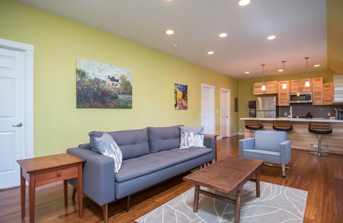 Tasteful, brand new guest house, beautiful neighborhood on the river. Guests have private deck facing yard and separate outdoor sitting area on the Willamette river behind the main house (but not a river view from the unit). Watch the birds, boats and riverboat cruise from the patio with fire pit. 2 miles from lightrail station, restaurants and shopping nearby and 15 mins. to downtown Portland. Kayaks available during warmer months (lifejackets required). Next door to boat ramp, trailer and RV parking available. Friendly to families as well with toys available upon request. Cable TV and Netflix on the flat screen TV, video games available too. Two private bedrooms, each with a queen bed and closet. Big and comfortable fold-out couch and air mattress if needed. Full kitchen with espresso and coffee. All are welcome! East side of river near Milwaukie.