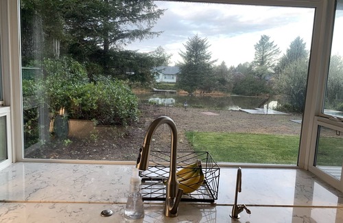 Canal House is located on 26 miles of freshwater canals and connects to Duck Lake with 4 islands for exploring with your kayak. Deer and wildlife (raccoons, otters, fish, herons, and even a few bears (which we know are here but have never seen ourselves). Beautiful deck across the back of the house and another one down by the dock. Work remotely? No problem. Just bring your laptop or computer and plug it in for work or play. Very fast high-speed internet and wifi. Around the corner is Weatherwax Trail, an easy flat trail through the forest and out to Duck Lake. A wall of sliding glass doors provides you with 24-hour views of the canal, wildlife, and ever-changing sky. Peaceful location across from an elementary school and a church. Ocean Shores has cute shops, many coffee drive-up kiosks, and some casual cafes to choose from. A grocery store and pharmacy provide everything that is needed for a wonderful stay. All facilities in town are just a 5-minute drive from Canal House.