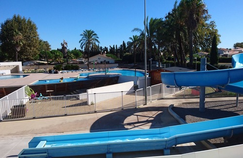 To escape the heat of the south of France, the campsite Castellas has a beautiful water park with outdoor pool and water slides. The whole family will have fun!