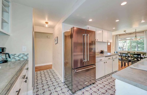 This home away from home has two cozy bedrooms with a king bed and a queen bed -- perfect for a family or group of four! Moreover, it has a spacious living room, a lovely dining room that could accommodate up to six people (with the futon as third bed), a vibrant kitchen, and a den that has sliders to the 600 sqft of hardscaping and raised bed gardens!