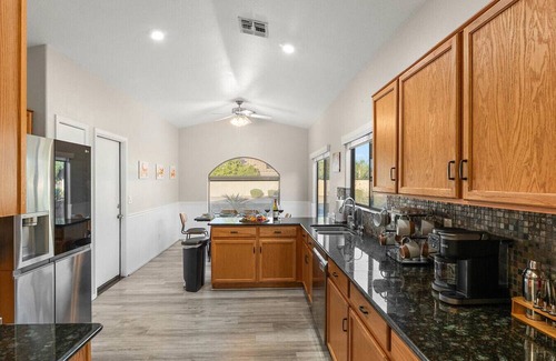 The home is centrally located in a safe, quiet family-friendly neighborhood. You are a short drive to local restaurants, shops like Walmart etc. & Old Town Casa Grande. From the home, several different day trips are available at your fingertips, since you are halfway between Phoenix & Tucson. Get your adrenaline pumping with a day of mountain biking, hiking, or skydiving. Enjoy a day of fun & luxury at a nearby golf course, shopping center or casino. A Fry’s grocery store is available a few minutes away to easily get essentials & groceries for your stay.