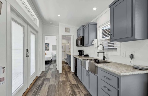 Looking for the perfect spot to spend your time in Fredericksburg? Come and stay in one of our cozy tiny homes; each one has its own unique style and layout. Tiny but spacious describes the home's interior. Each has a comfortable place to sit and relax and either a full kitchen or kitchenette (microwave & Refrigerator only) for making a delicious snack or meal. Outside you have your own private patio to take in the stunning sunset while sipping on a glass of wine. What are you waiting for? Come stay, drink, and eat at the best-kept secret in the Hill Country, The Resort at Fredericksburg!