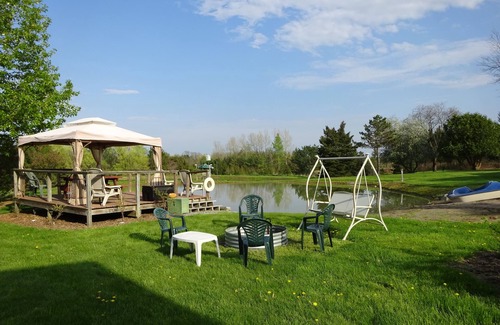 Great place for leaf peepers! Finished apartment with deck above Christmas Tree Storage building. Separate entrance with one set of stairs. Country setting with superb views, ponds, wooded areas and excellent wildlife viewing. Your stay includes a fire pit for your use and covered gazebo with picnic table. Decks extending over ponds are available for swimming, fishing and feeding fish. Licensed fishing preserve- no license required. Numerous ponds and wetlands to enjoy. Hiking and birding trails available on 150 private acres. Many additional miles on adjacent state forest including pristine Hemlock and Canadice Lakes. Guests have use of canoe, paddle boat and kayaks on large private ponds.