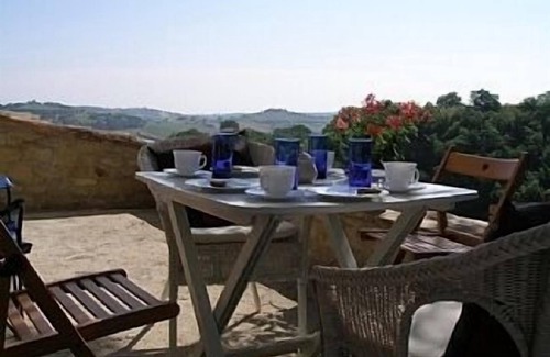Podere dei Tordi (The Farm of the Song thrush) is a fully restored traditional farmhouse in the hills above Lake Grazie and the historic town of Tolentino. It is a 10 minute drive from the town and lies midway between the beautiful Adriatic coast and the Sibillini Mountains. The house sits in its own grounds with fine views across rolling farmland with olive and fruit trees providing a natural boundary at the rear. It has been restored with all modern amenities whilst retaining the traditional Marchigiani style. There is a large private swimming pool with sun beds and parasols. The large terrace sheltered by a pergola is ideal for dining alfresco and is equipped with table seating up to 10 people.