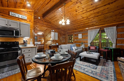 ~Deerly Beloved is the perfect couples getaway! Private Hot Tub w/ direct access from BR. Peaceful cabin in the woods! Start your vacay off with some local brew at the rustic Gatlinburg Brewing Company <1 mile away, or feeling something more upscale, for special occasions, you MUST try The Appalachian Restaurant <2 miles away NEW in 2021!