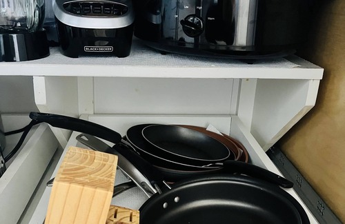 Kitchen is Fully Furnished pots, pans, appliances crockpotsairfyers, mixers for baking and cooking