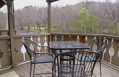 Upon arrival you will immediately notice the relaxing sound of the Chattahoochee River flowing behind your condo’s Private Balcony with Table and Chairs. There are also steps leading down to riverside deck with Picnic tables, swings and BBQ Grills.