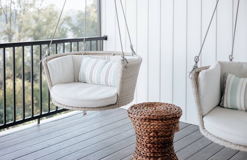 Brand New Renovation!Check out our 5 Star Ratings on our other homes!Beautiful 4 bedroom, 4.5 bath rental steps from the Missouri river with 3 floors of living space. Main level features a fully stocked kitchen, coffee bar, dining space for up to 10 people, a full bathroom, and patio overlooking the Missouri river with seating for 10. Upstairs you will find 4 bedrooms: 3 with king beds and 1 with a queen. 2 of the bedrooms have en suite bathrooms and there is a a full hall bath with double bowl sink. There is also a sectional in the living room with a queen sleeper sofa. The basement level features a sitting area with fireplace, bar area with an additional fridge, additional living room and game area, as well as another patio level with a hammock and hammock chairs to relax in.