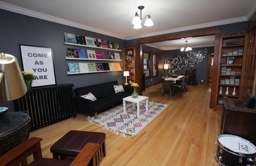 This musically-inspired 2 BR is perfectly placed in Oak Park and we know you'll have a rockin' vacation here. Steps to shops, cafes, train, and FL Wright home. It's the cutest space you'll ever see, with a cassette wall, reading nook, and a million little details that we put tons of care into. The apartment is a vintage brownstone with charming details, like original woodwork. Street parking is available. Easy access to downtown Chicago.